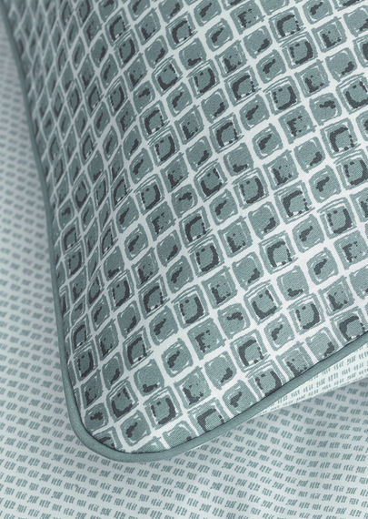 Mein persönlicher Favorit ist die Talla-Wende-Bettwäsche aus softem Baumwoll-Satin. Die Front ist mit einem etwas größeren kontrastreichen Dessin versehen, während die Rückseite in einem Minimal-Muster gehalten ist.